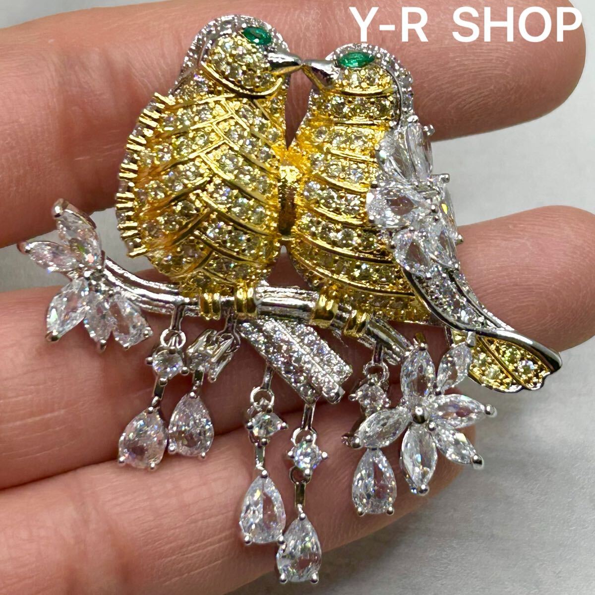 > ホワイトトパーズたっぷりの小鳥デザインブローチ★レディースペンダントトップ シルバーアクセサリーエメラルド 新品宝石Y-R卒業式入学式