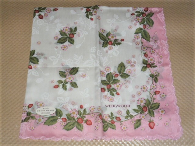 - ウェッジウッド WEDGWOOD ワイルドストロベリー ピンク 白 49cm×49.5cm ハンカチ W15