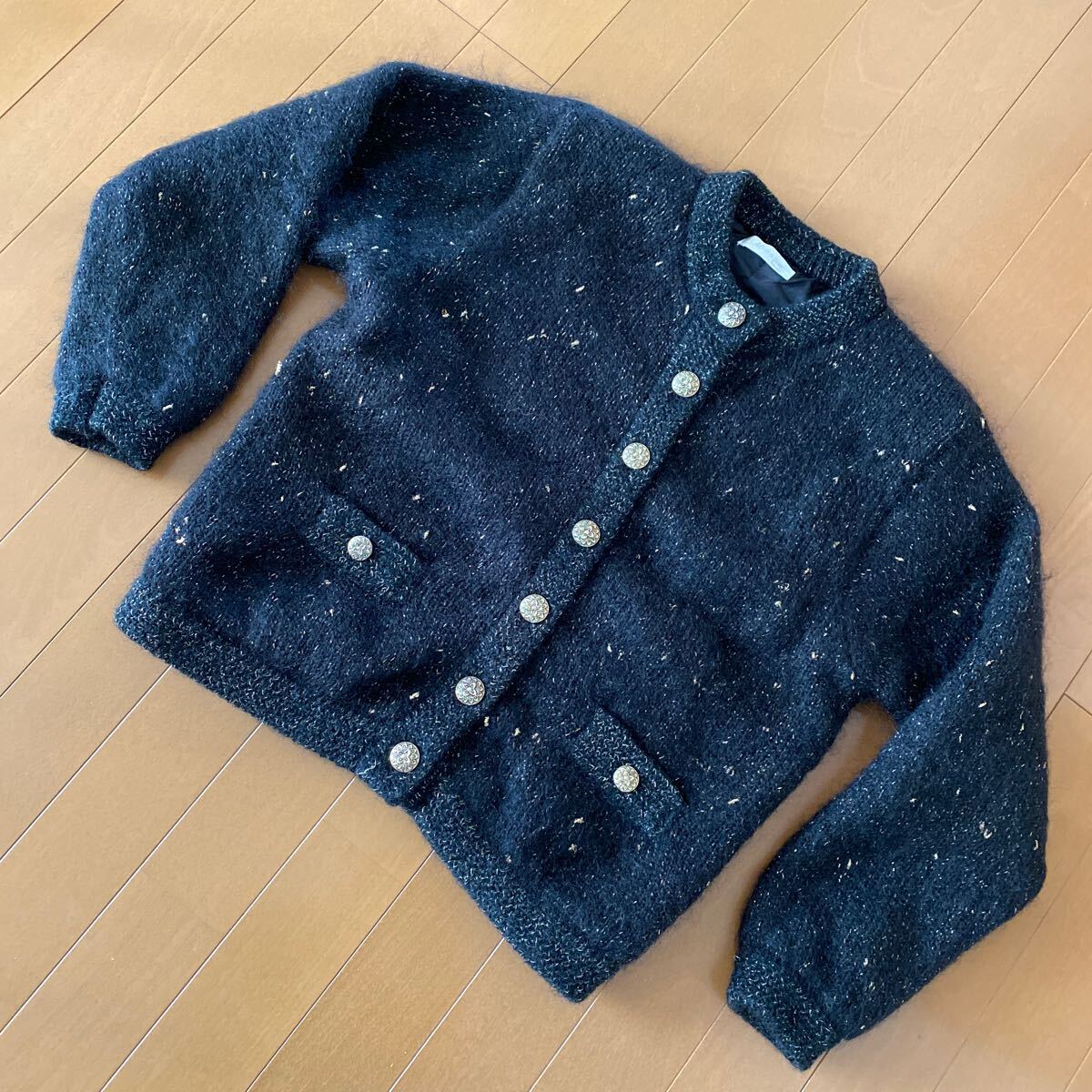- カーディガン アンゴラウール混 暖かい ニットシャネル風なデザインが素敵!!!ラメ入り- 今季流行!!!!可愛い 秋冬-送料込み