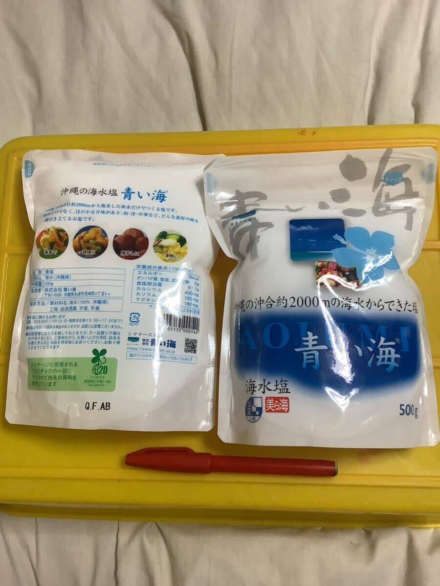 - 海水塩 青い海 500g 2袋 沖縄海水塩 美ら海 仕入除500超10%オマケ 効果説明欄 青い海 賞味期限無 送料負担別1〜4出品 在庫12