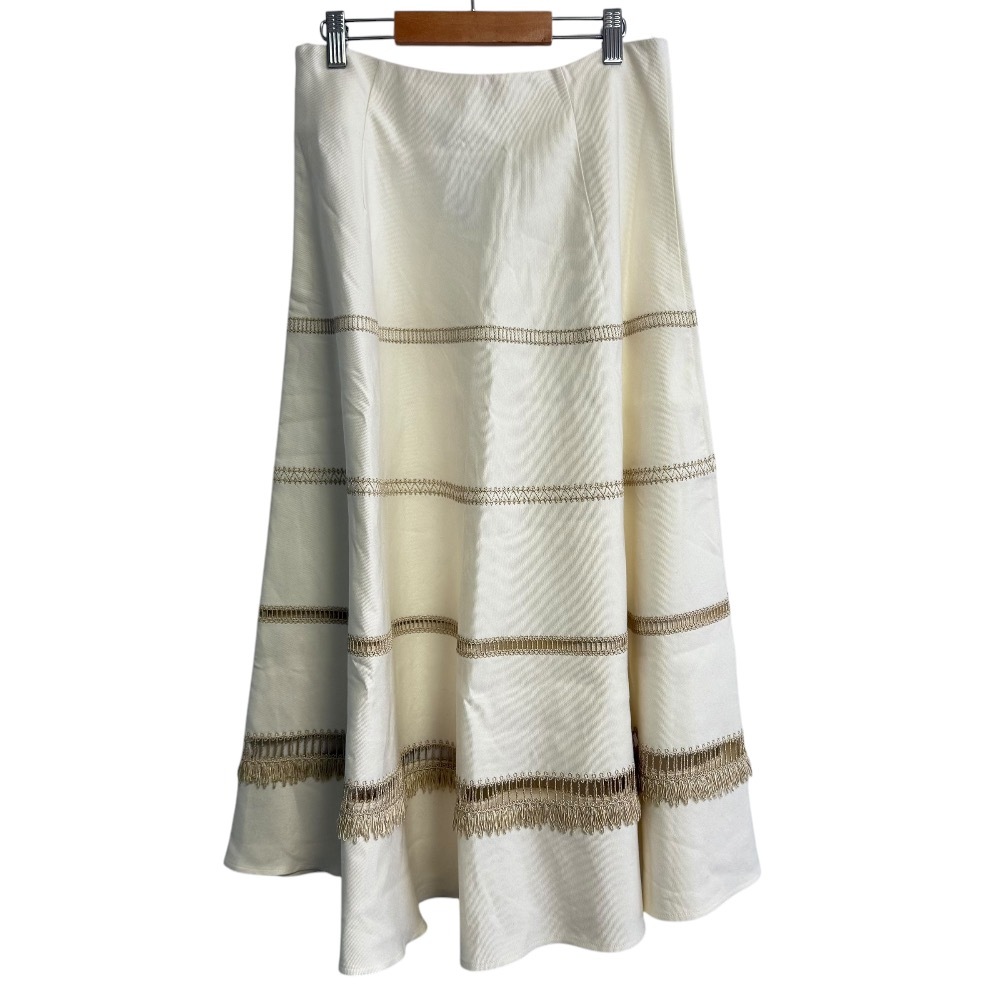 > 美品 22SS ERMANNO SCERVINO エルマノシェルビーノ リネン ストレッチ 刺繍 ミモレ丈 フレアスカート 44 アイボリー
