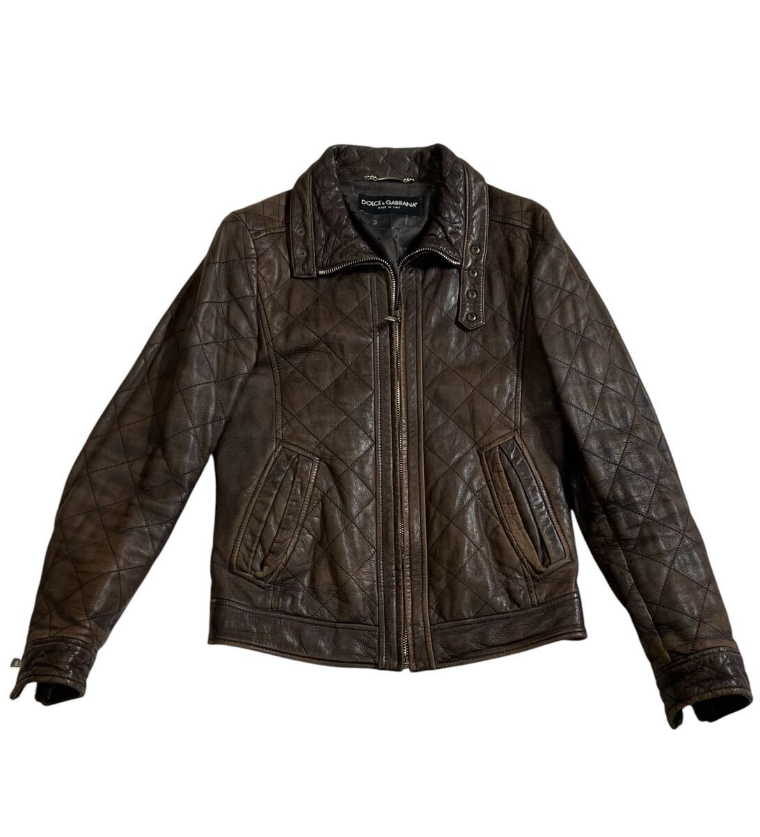 - イタリア製 ■ DOLCE&GABBANA ドルチェアンドガッバーナ ■ 上質 本革 羊革 LAMBSKIN レザー シングル ライダース ジャケット ブラウン