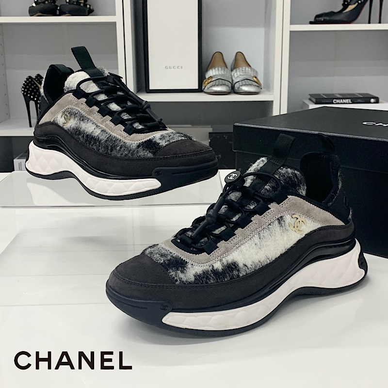 - M11549 シャネル モヘア スエード マトラッセ ココマーク ロゴ スニーカー グレー