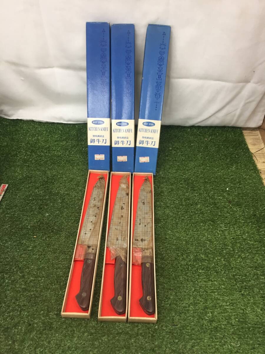 > 【中古品】KANEUZI 兼氏 キッチンナイフ 御牛刀 全長295 刃渡り180mm 3本セット /IT361XMQ9Y3O
