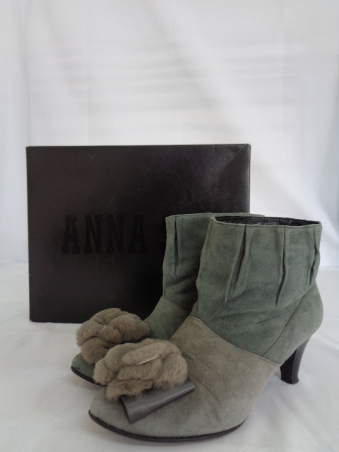 - 最終出品 2577【本州のみ送料無料】ANNA SUI アナスイ レディースシューズ ショートブーツ グレー MADE IN JAPAN