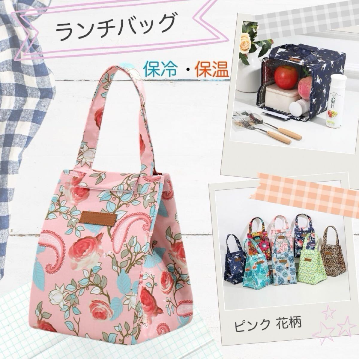 - ランチバッグ ピンク 花柄 保温 保冷 手提げ 弁当袋 保冷バッグ クーラー