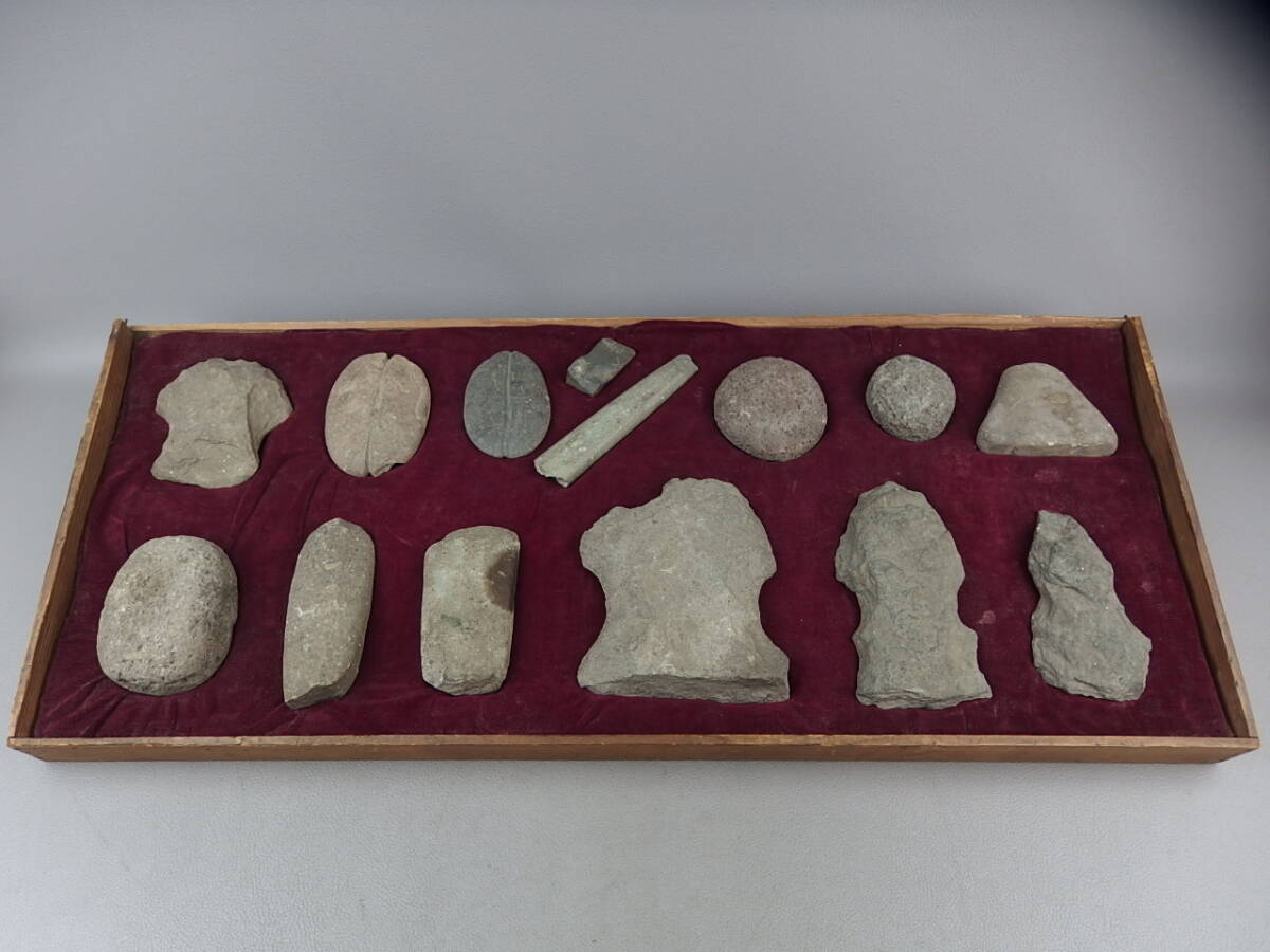 > 【骨董・出土品】★古代石器★★打製石器 磨製石器 石斧 矢尻 石錘 fr096sl.7 旧石器時代文化 縄文文化 考古学 発掘品 出土品