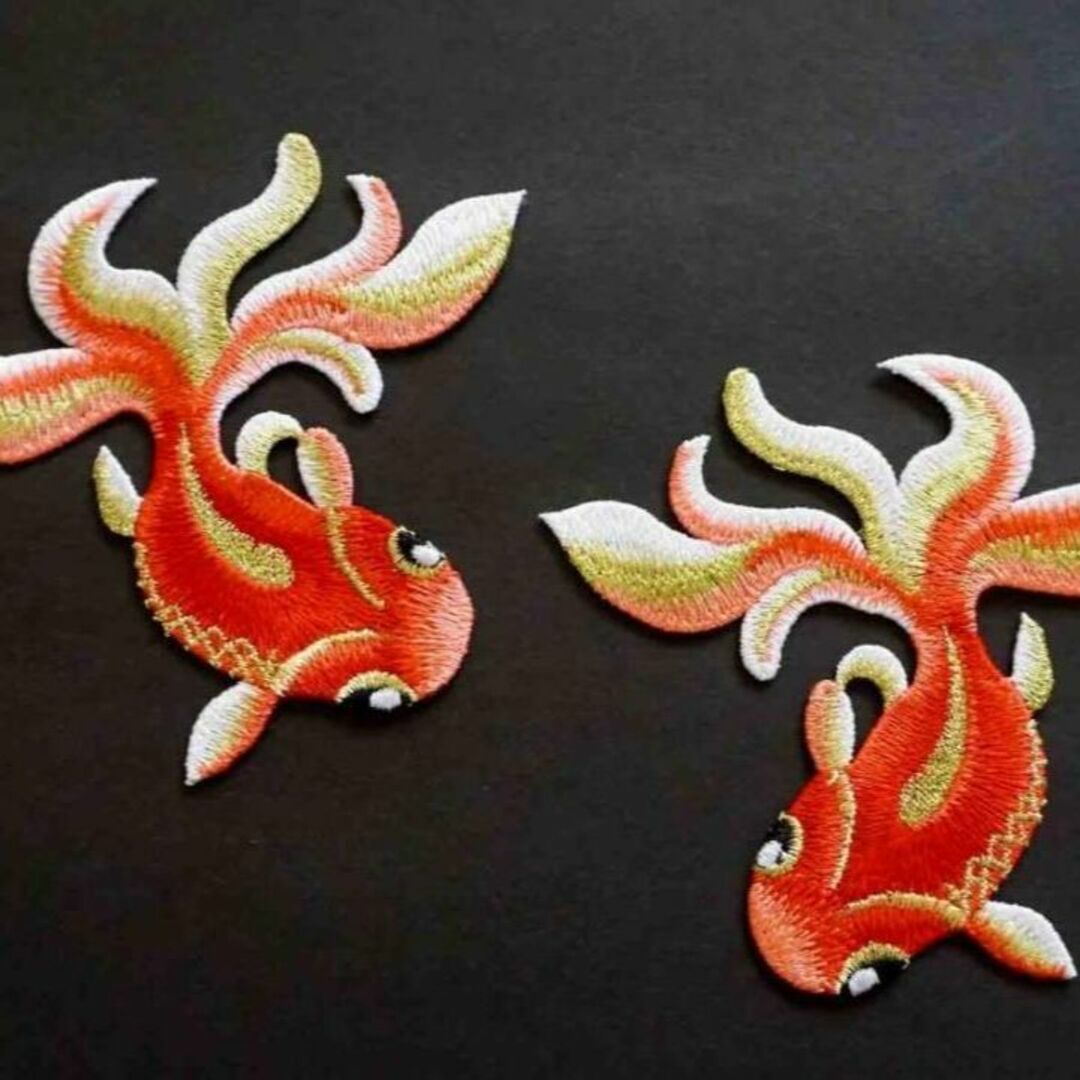 - 《2枚セットCN赤懐金魚》『お買い得』新品◆袴 振袖 和服 呉服 裁縫 手芸 勝負服 成人式 金糸 刺繍ワッペン■《開運 ラッキーアイテム》