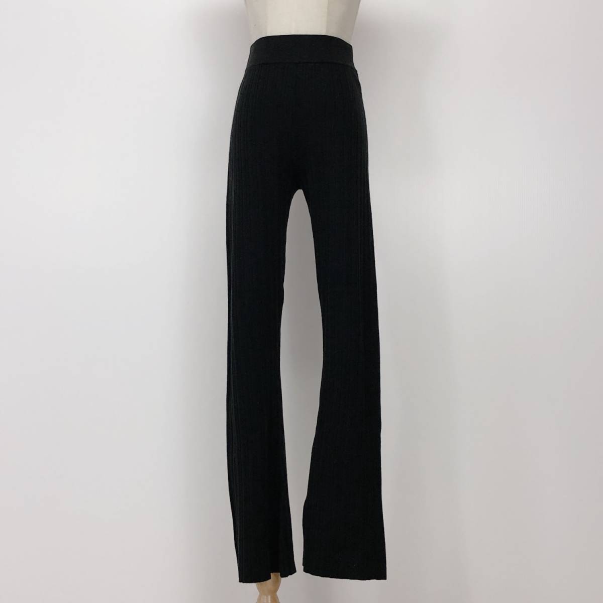 > YX566 GU(ジーユー) レディース パンツ ロング丈 ウエストゴム ニット 厚手 伸縮性 Mサイズ ブラック 黒 無地 シック おしゃれ 秋冬