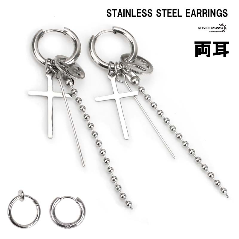 - (B-フェイクピアス-穴不要) 両耳 穴不要 フェイクピアス ステンレスピアス リング フープピアス シルバーピアス