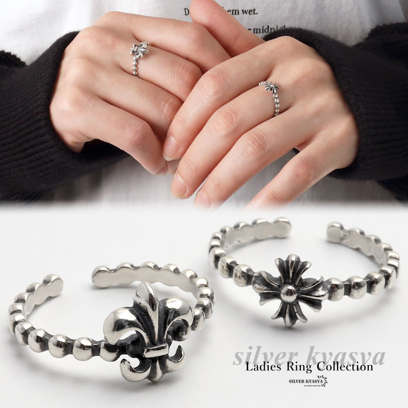 - (ユリ) リング シルバー925 クロス ユリ 十字架 百合 細身 シルバー 銀色 フリーサイズ オープンリング