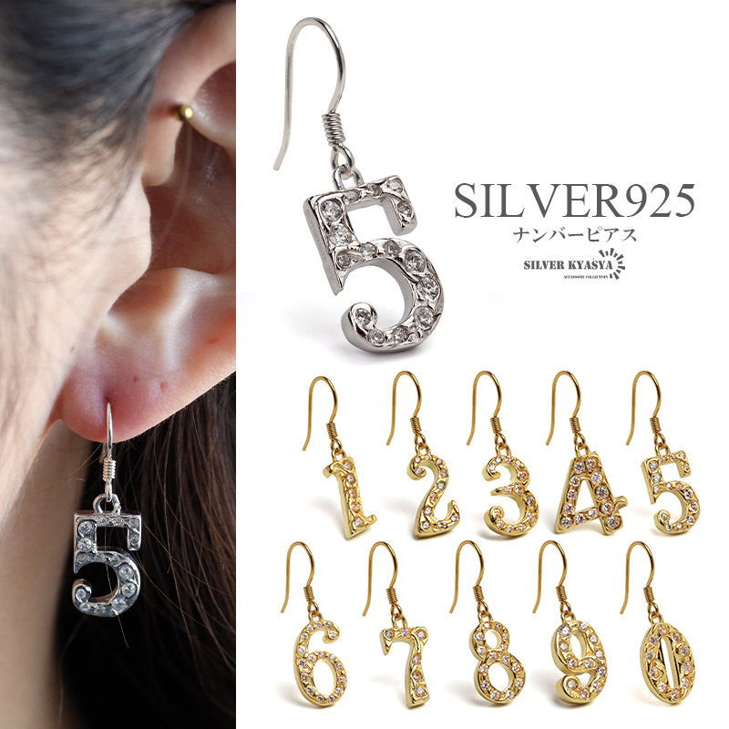 - (シルバー、0) ナンバーピアス 数字ピアス フックピアス 金 シルバー925 金属アレルギー対応 片耳1点