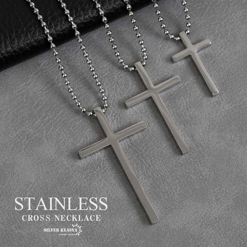- (Mサイズ) クロスネックレス ステンレス チェーンネックレス メンズ シルバー 銀 十字架 ボールチェーン 金属アレルギー対応