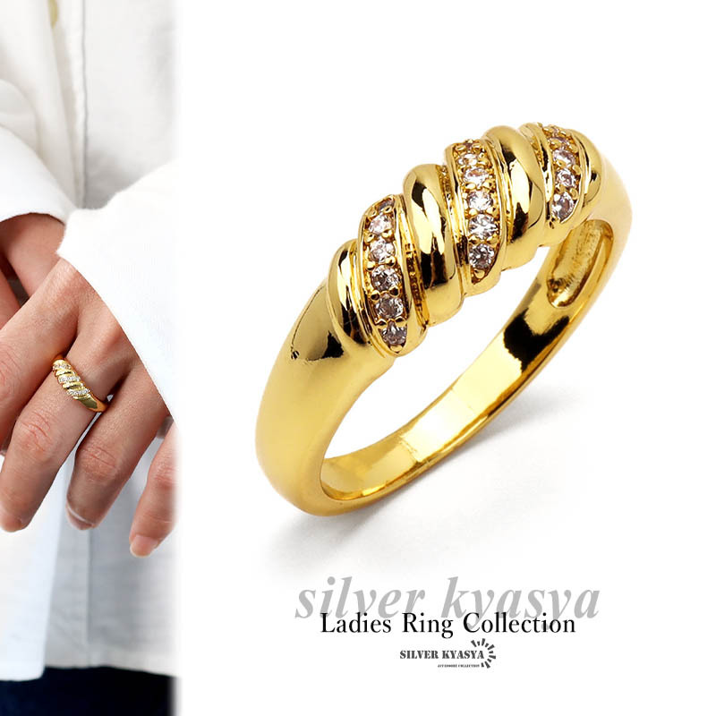 - (17号) ツイストリング ゴールド 18K GP K18 CZ レディース ゴールドリング キラキラ 金 指輪 パヴェ
