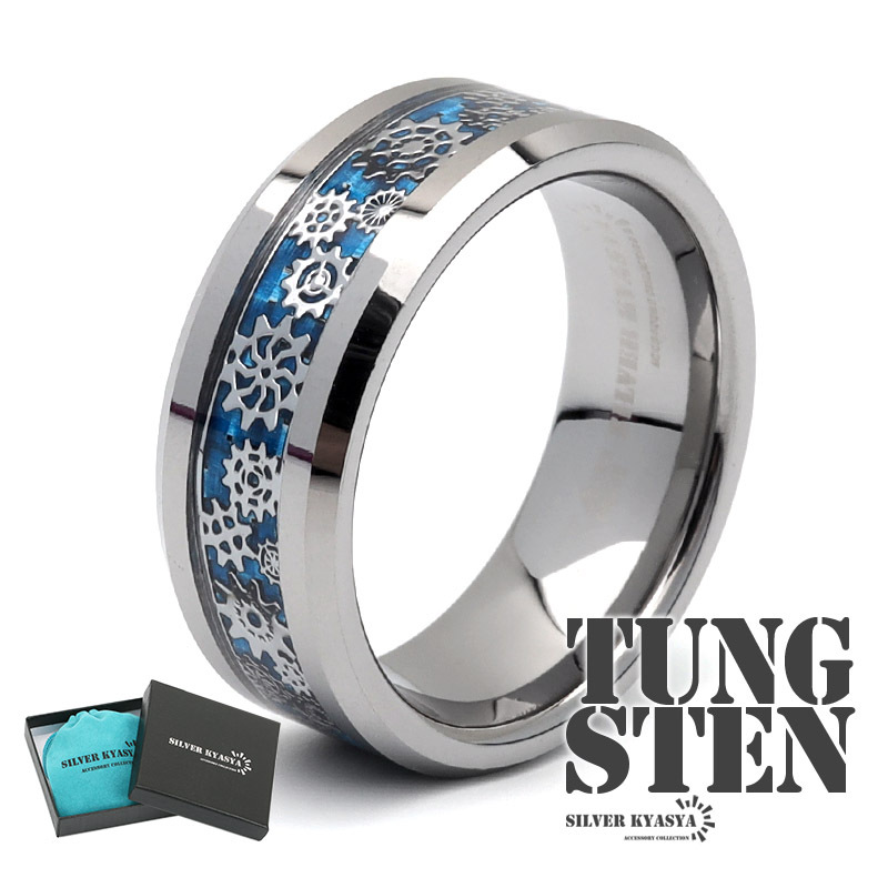 - (12号) タングステン 歯車リング 指輪 リング ブルー シルバー メタリック ギア 金属アレルギー対応 専用BOX付属