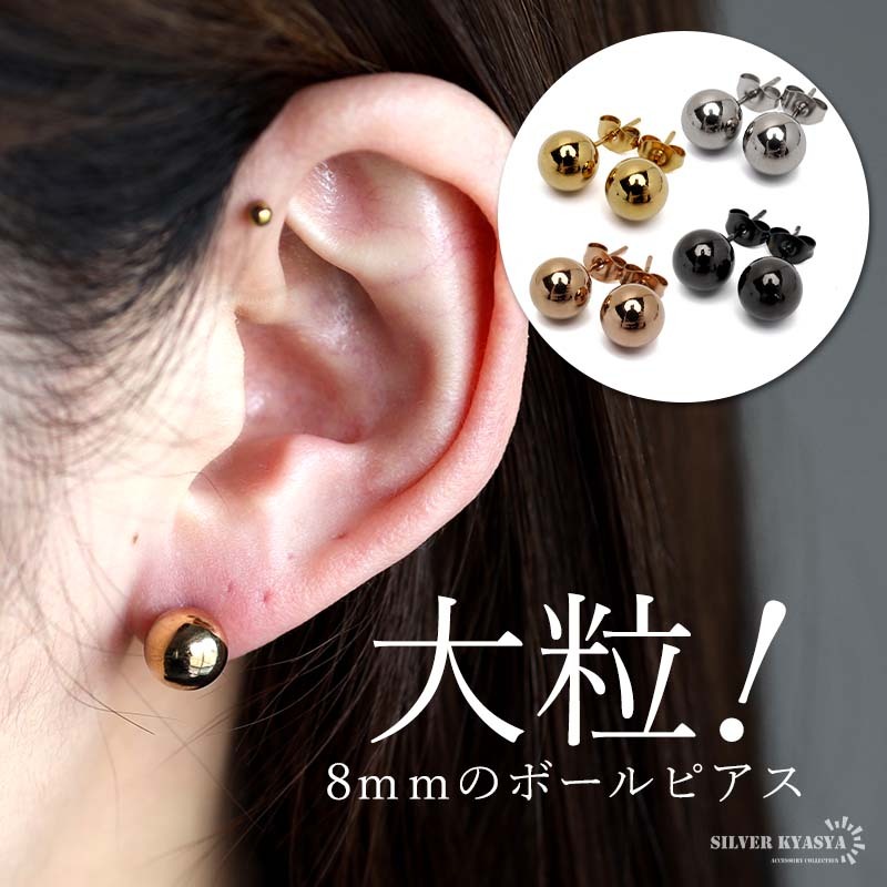- (ローズゴールド) オーブピアス ボールピアス 大粒 大ぶり ステンレス ピアス シンプル 両耳用 2点 金属アレルギー対応