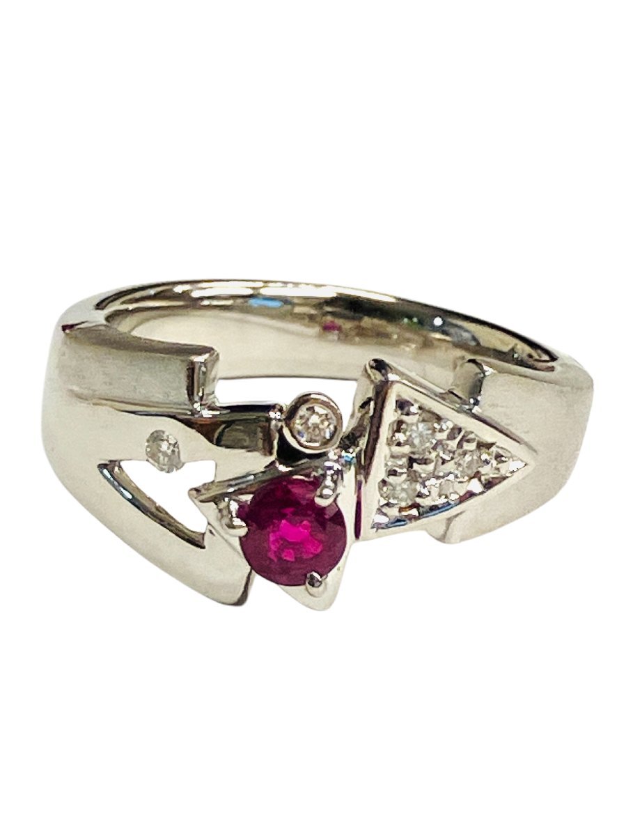 > qoj.YHW02 PT900 天然ルビー×ダイヤモンド デザインリング 中石0.37ct/枠石0.07ct 鑑別書付き 12.5号