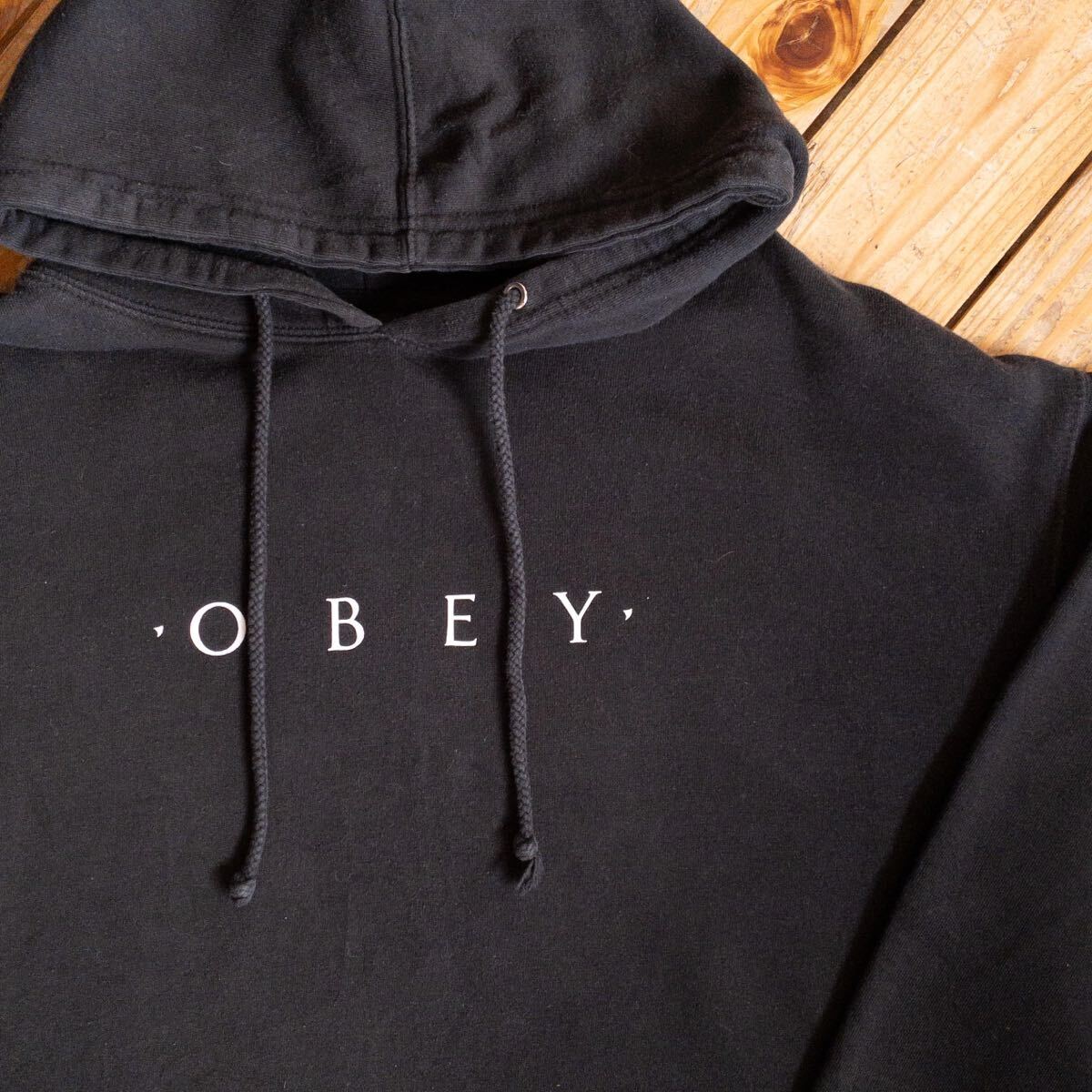 > USA古着 OBEY オーベイ スウェットパーカー メンズ XLサイズ ブラック ストリート グラフィティ アート プルオーバー カジュアル S0937