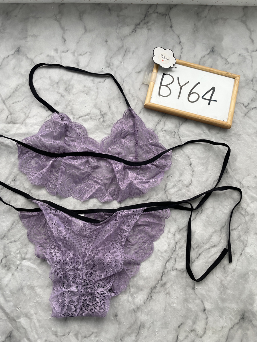 - [Synlala] セクシーランジェリー ブラジャー&ショーツ セット 上下セット 総レースでセクシーな紐結びのブラとショーツ Sサイズ