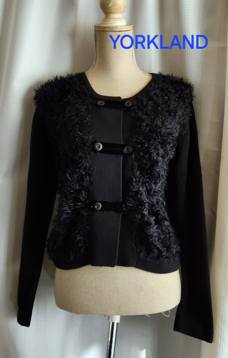 - 大変美品 YORKLAND 可愛いカーディガン 黒 ノーカラー ニット ブラック 長袖