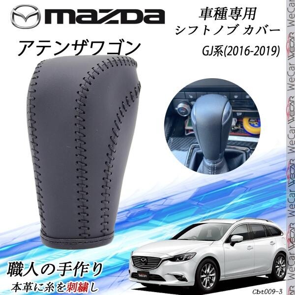 - アテンザワゴン GJ系 シフトノブ マツダ専用 DIY 本革材質 内装カスタムパーツ アクセサリー 爪キズ防止 取付簡単 2016-2019 cbt9番黒線