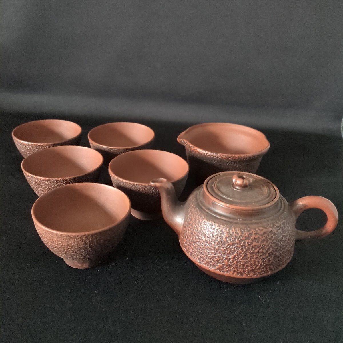 - 4185 備前焼 石目肌 朱泥 茶器セット 急須 湯冷まし 茶道具 煎茶道具