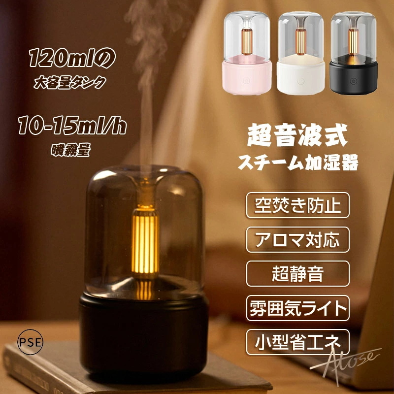 > 加湿器 超音波式 スチーム式 小型 空気清浄 卓上 おしゃれ LEDライト付き 120ml大容量 持ち運び便利 空焚き防止 USB 充電式 除菌 自動停止