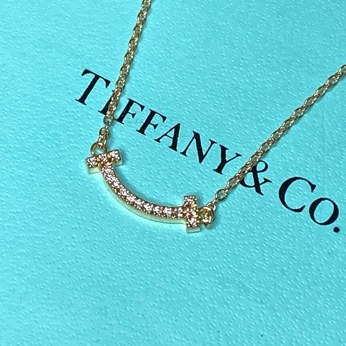 > ☆TIFFANY&Co./ティファニー K18(AU750)Tスマイル ミニ ダイヤ ネックレス/ペンダント 長さ約45.5㎝ 総重量約2.1g 管理No363