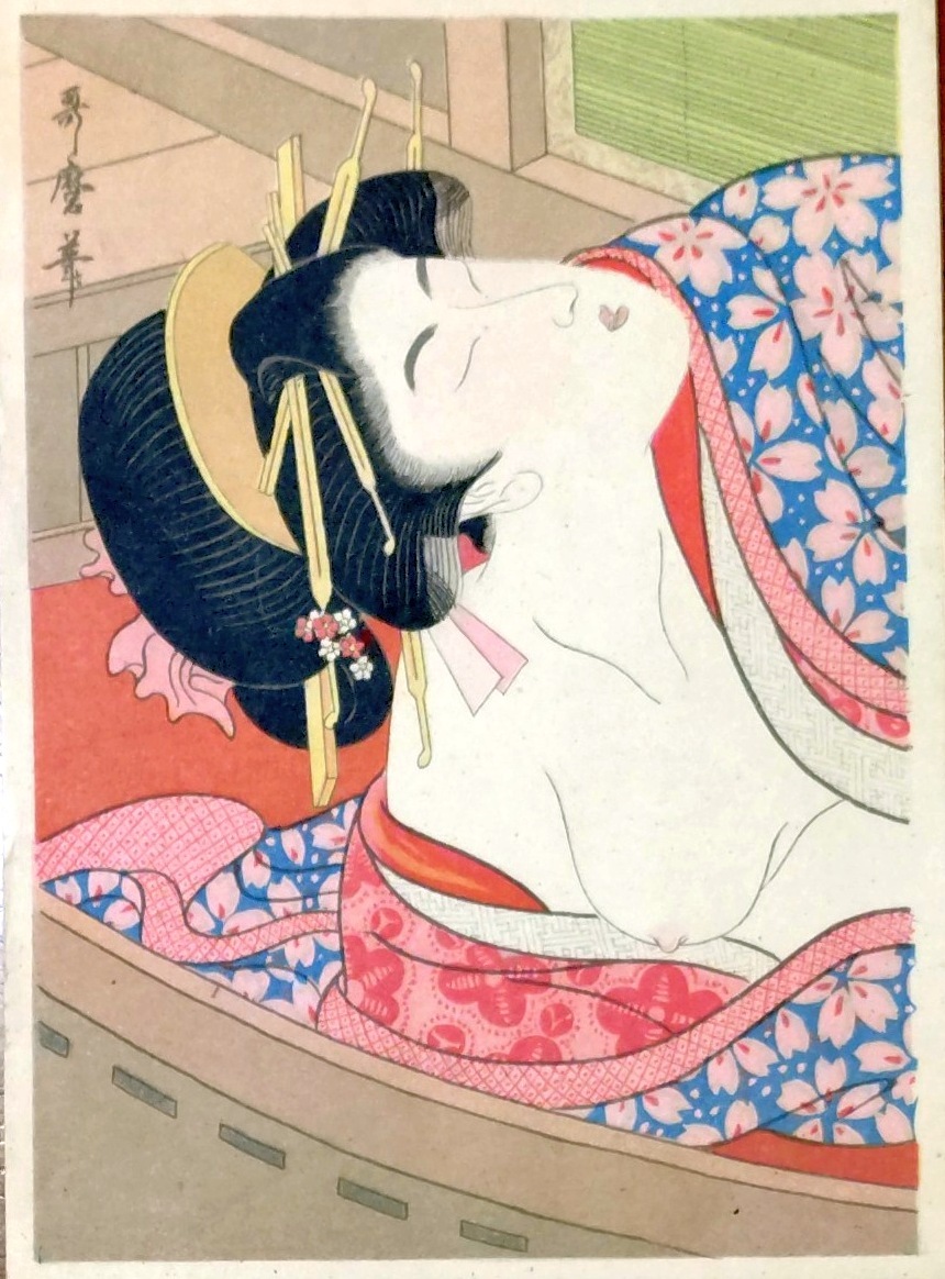 - f25020716〇一枚摺物 B6サイズ 彩色木版画 浮世絵 機械摺 歌麿 昭和初期〇和本古書古文書