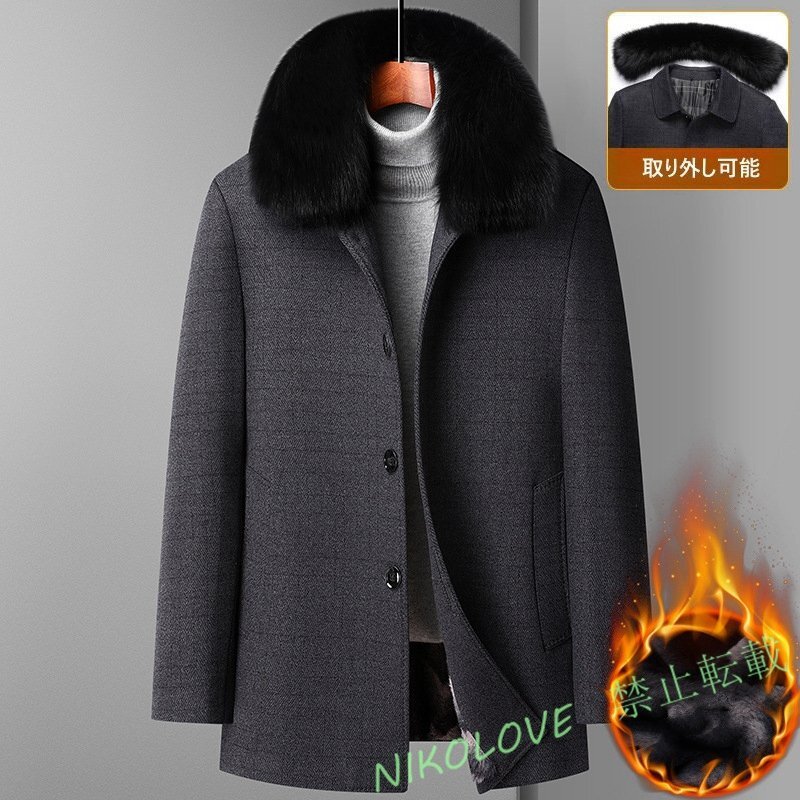 - ☆新品ダウンジャケット ダウンコート 2way 取り外し可 中綿 ビジネスコート 職人手作り 厚手 メンズコート 紳士スーツ グレー M LK394