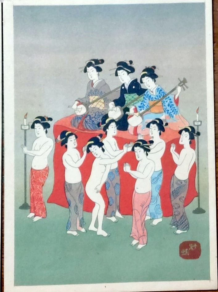 - f25020722〇一枚摺物 B6サイズ 彩色木版画 浮世絵 機械摺 昭和初期〇和本古書古文書