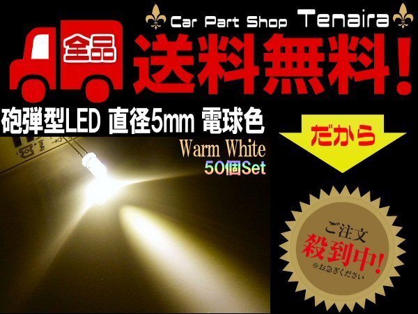 > LED φ5mm 砲弾型 裸電球色 ウォームホワイト 50個 セット リペア 自作LED制作 電子工作などに まとめ買いがお得♪ 送料無料/7