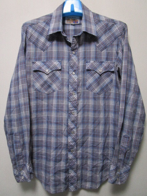 > Authentic Western atp 長袖ウエスタンシャツ・チェック(ワークシャツ80'sビンテージ古着ラングラーリーバイスH BAR Cロックマウント)