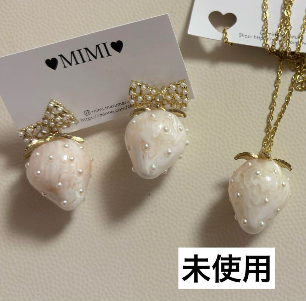 - 未使用◇mimi◇ミルクティーいちごピアス&ネックレスセット