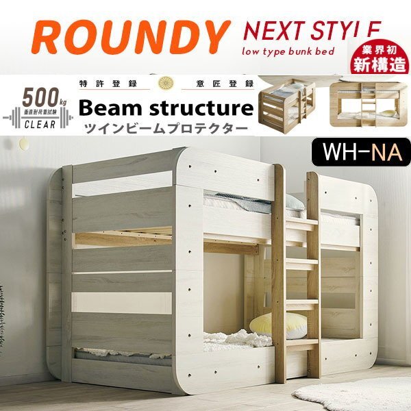 - ラウンディ ROUNDY 2段ベッド 業務用 会社仮眠用 高133cm ベゼル型 超耐震対策 セパレイト可 WH-NA 送料無料 耐荷重500㎏