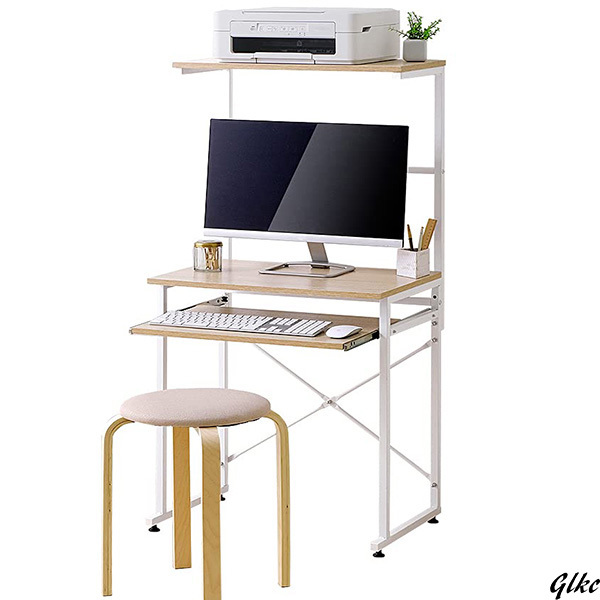 - 【メラミン樹脂でキズや水汚れに強い】 机 オフィス PCデスク パソコン ワークデスク 組立品 ライトナチュラル/ホワイト