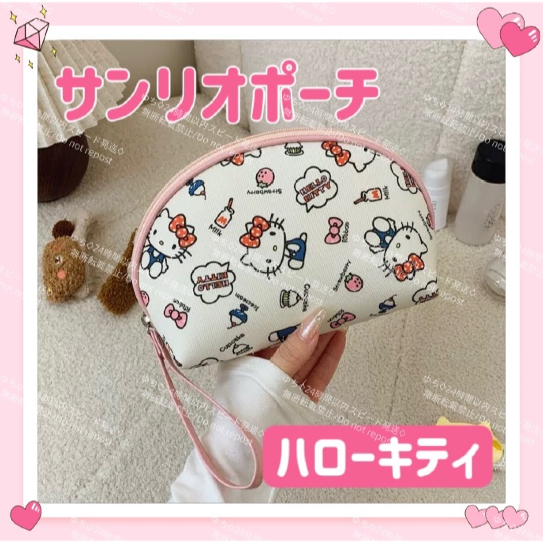 - 海外限定 サンリオ ハローキティ ラウンド ポーチ 多機能 大容量 メイク 化粧 トラベル 小物入れ 可愛い ③