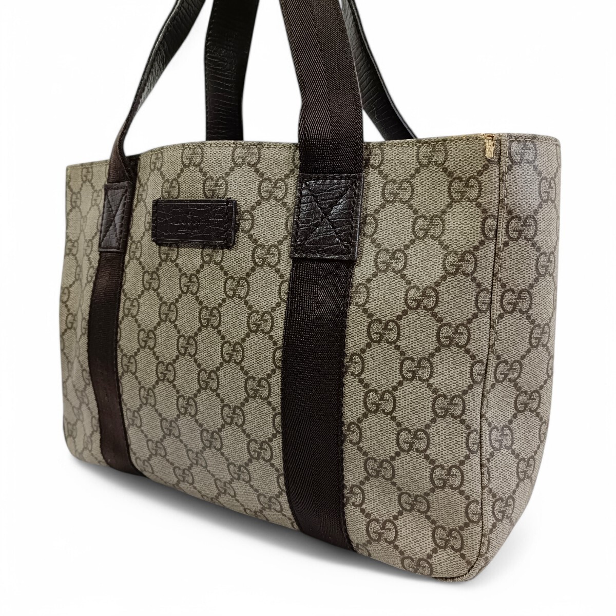 - 正規品 GUCCI グッチ ハンドバッグ GGスプリーム PVC レザー ブラウン ベージュ GG柄 ランチバッグ 男女兼用 ユニセックス 茶色 かばん