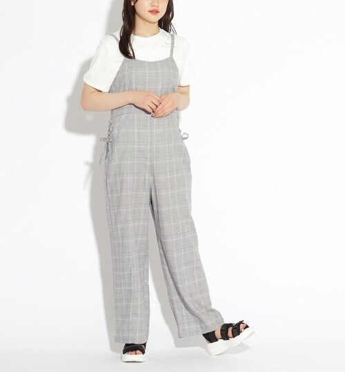 > 新品 PINK-latte 【セットアイテム】サイドレースアップサロペット+Tシャツ グレー(212) 14(140cm) 定価5489円