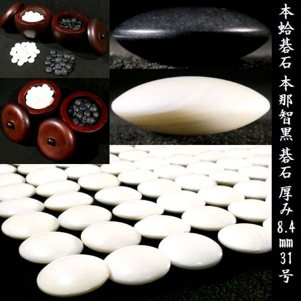 【 恵 #1526 】 囲碁 碁石 本蛤碁石 本那智黒 厚み 31号 ( 8.4mm前後) ズシリと重い上質な碁笥付拍卖