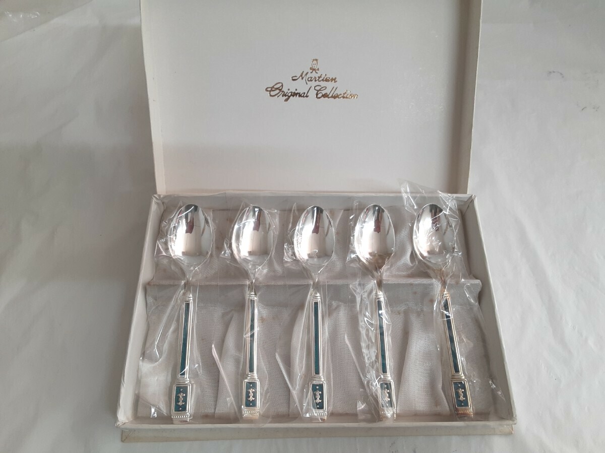 - ☆未使用☆Martian☆マーシャン コルチナ☆コーヒースプーン5本セット☆ステンレス☆銀メッキ仕上げ☆箱あり☆