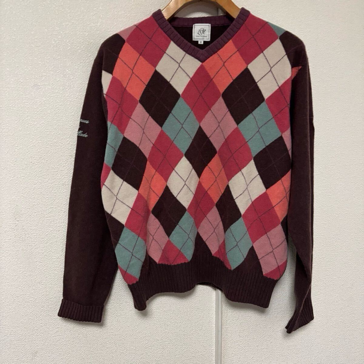 - zoyゾーイ カシミヤ ウール アーガイル Vネック ニット セーター2