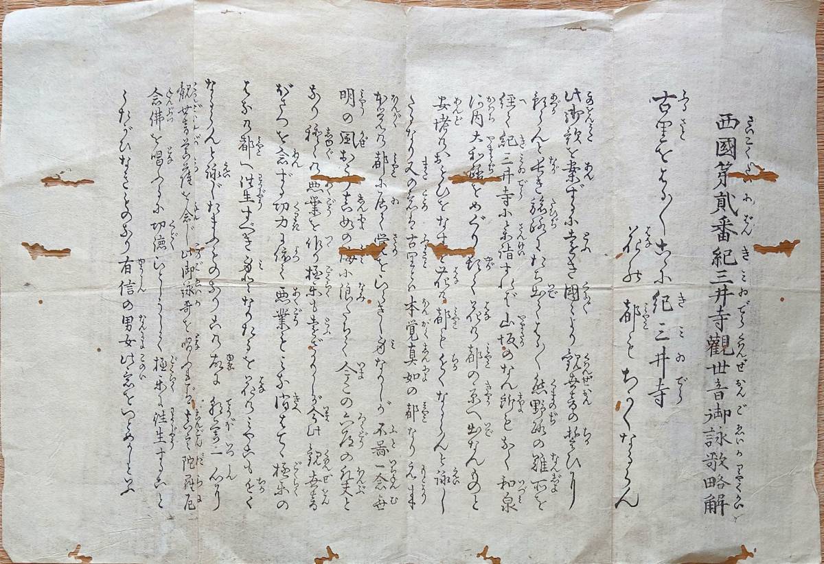 - f23100724〇摺物 木版 西国第二番札所 紀三井寺観世音御詠歌略解 和歌山県和歌山市紀三井寺〇和本古書古文書
