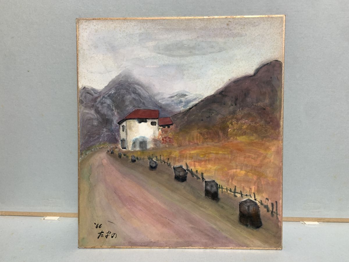 - 【真作】色紙画 1966年 たまの:作 『チロルの照秋』 ※人の手で書かれたもの 詩/短歌/俳句/情景画《色紙3枚以上送料無料》 O1227J-4