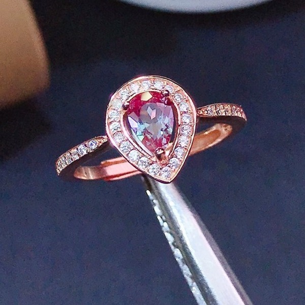 天然アレキサンドライトレディリング、4×6mm、925スターリングシルバー