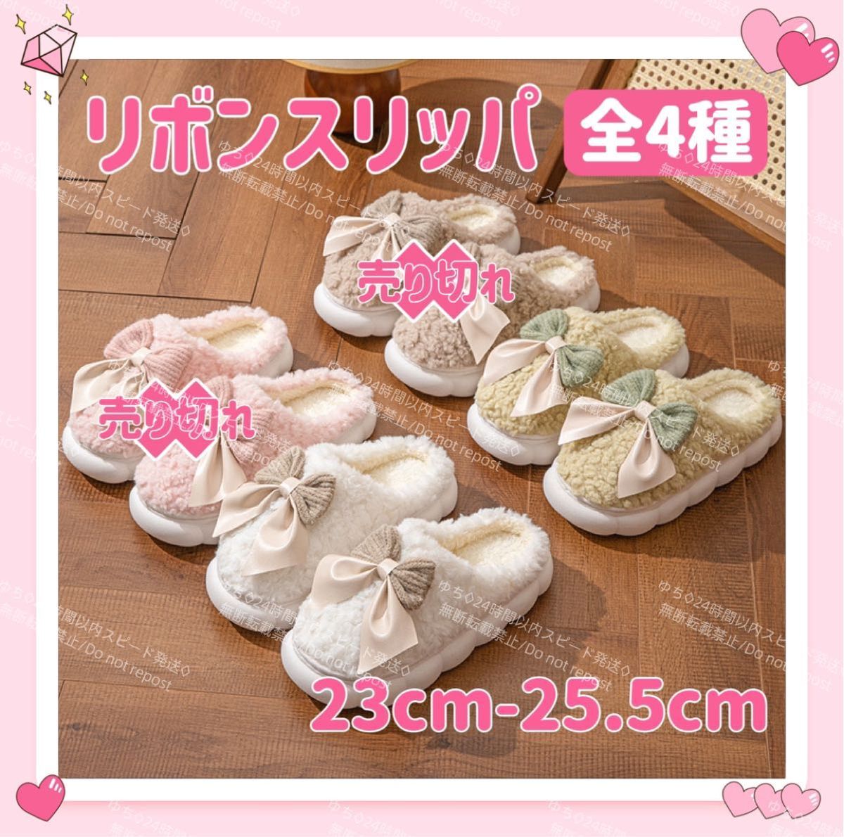 - スリッパ ルームシューズ 室内 秋冬 あったか リボン りぼん ボア モコモコ ふわふわ オシャレ 可愛い 23cm-25.5cm