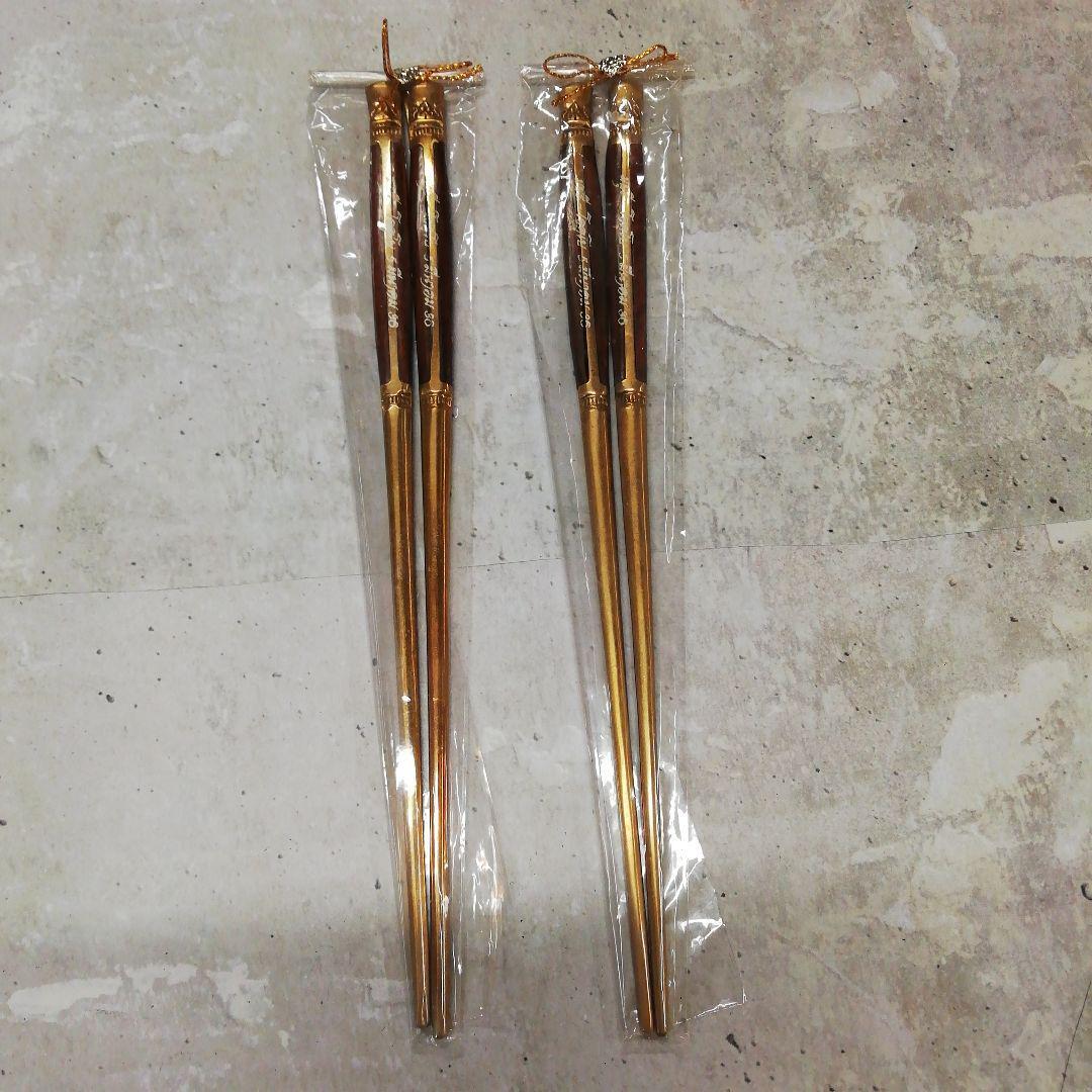 - 夫婦箸 アジアン エスニック ペア 2セット 金 木 エンボス タイ【b38】
