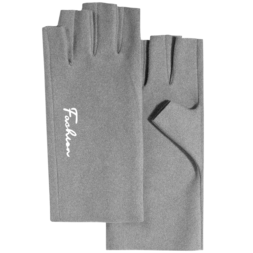 - 指なし手袋 ハーフフィンガー 男女兼用フリーサイズ ドラロン綿 自然発熱生地 スマホ操作/勉強/運転などに グレー GW-HFWG174GR