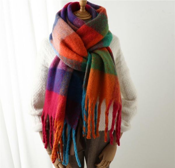 - 美品 * 上質 ストール 大判 マルチチェック ボリュームフリンジマフラー 暖かい 厚手 大人 きれいめ 配色 マフラー * 2号色