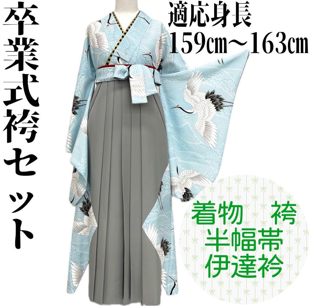 - 【着物と帯 時流】L25194◆卒業式袴4点セット◆お買い得セット鶴 総柄